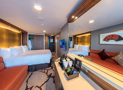 Pilih pelbagai jenis bilik kabin mengikut bajet anda. Interior Cabin, Oceanview, Balcony Deluxe Cabin sehingga ke ‘the Palace’. Cruise mewah kini mampu dimiliki oleh semua.